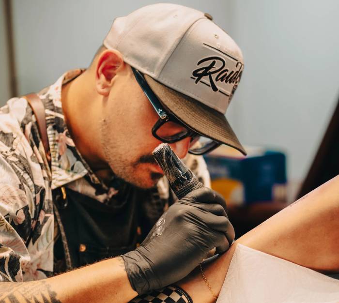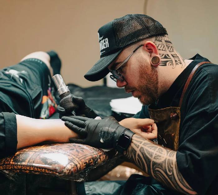 THE ARTISTS OF 18b Tattoo Artists | Downtown Las Vegas Our ten resident artists at 18b Tattoo in the DTLV Arts District.Browse styles below to find the right technical fit for your project. Tyson savageson Bold Traditional FOCUS Illustrative tattooing with an emphasis on illustrative blackwork, plus black and grey and fine line. View Full Portfolio & Bio Request Consultation Mike miketa_tattoo Bold Traditional FOCUS: Fine-line and illustrative black-and-grey, plus Japanese-inspired work and realism. View Full Portfolio & Bio Request Consultation Marcos shaolin.vaquero Bold Traditional FOCUS Specializing in timeless American Traditional that heals solid and stays vibrant. 15 years of industry-leading technical application. View Full Portfolio & Bio REquest Consultation BABY G thybabyg Bold Traditional FOCUS Illustrative heavy blackwork—anime/manga, botanical, nerdy themes, and cybersigilism. View Full Portfolio & Bio Request Consultation BURT kiwi.burt Bold Traditional Focus : Freehand Polynesian tribal tattoos with custom pattern work and body-specific flow. View Full Portfolio & Bio REquest Consultation OLIVIA oliviatattoos Bold Traditional Focus : Custom illustrative, fine line, ornamental, and neo-Japanese tattoos—built around comfort and clear communication. View Full Portfolio & Bio Request Consultation Roger rog_kelly Bold Traditional Focus : Disciplined, tasteful tattooing with an emphasis on client comfort and a clear, guided process. View Full Portfolio & Bio REquest Consultation Krystyn xyz Bold Traditional Focus : Fine line and blackwork with intricate, illustration-driven detail. View Full Portfolio & Bio Request Consultation THOMAS KULOLOIA-JUAN​ rog_kelly Bold Traditional Focus : Contemporary Polynesian tattoos—custom designs with bold structure and modern flow. View Full Portfolio & Bio REquest Consultation ENdy xyz Bold Traditional Focus : Freehand Polynesian tribal tattoos with custom pattern work and body-specific flow. View Full Portfolio & Bio Request Consultation